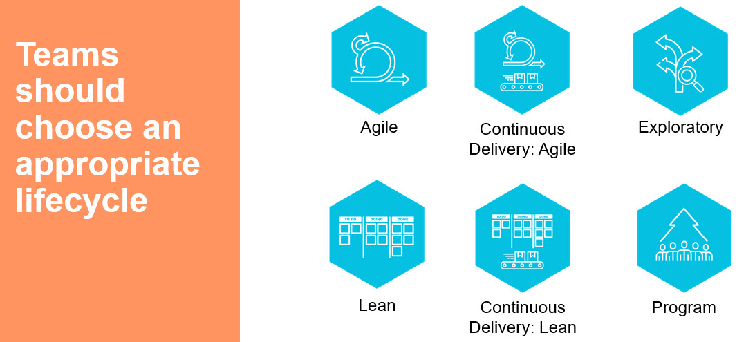 DA unterstützt sechs unterschiedliche Lifecycles. Von agil, lean, continuous delivery, exploratory und large-team versions der verschiedenen Lifecycles. Dabei werden keine einzelnen Lifecycles vorgeschrieben, da nicht alle Situationen/Kontexte nur von einem Lifecycle abgedeckt werden können.